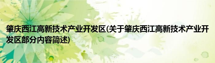 肇庆西江高新技术产业开发区(关于肇庆西江高新技术产业开发区部分内容简述)