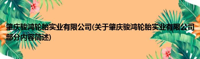 肇庆骏鸿轮胎实业有限公司(关于肇庆骏鸿轮胎实业有限公司部分内容简述)