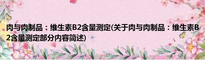 肉与肉制品:维生素B2含量测定(关于肉与肉制品:维生素B2含量测定部分内容简述)