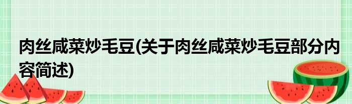 肉丝咸菜炒毛豆(关于肉丝咸菜炒毛豆部分内容简述)