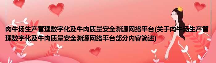 肉牛场生产管理数字化及牛肉质量安全溯源网络平台(关于肉牛场生产管理数字化及牛肉质量安全溯源网络平台部分内容简述)