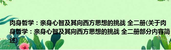导读 大家好,今天小方来说说一篇关于肉身哲学:亲身心智及其向西方思想的挑战 全二册,关于肉身哲学:亲身心智及其向西方思想的挑战 全二册部
