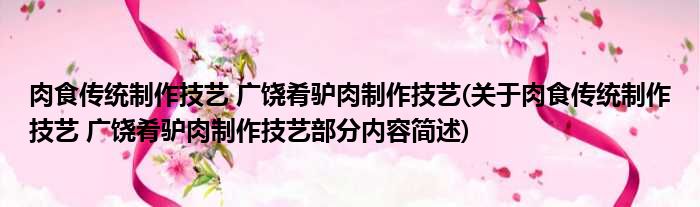 肉食传统制作技艺 广饶肴驴肉制作技艺(关于肉食传统制作技艺 广饶肴驴肉制作技艺部分内容简述)