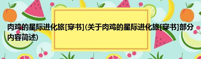 大家好,今天小方来说说一篇关于肉鸡的星际进化旅[穿书],关于肉鸡的星际进化旅[穿书]部分内容简述的文章,那么现在就为大家来简单介绍下,希望对各位小伙伴们有所帮助。