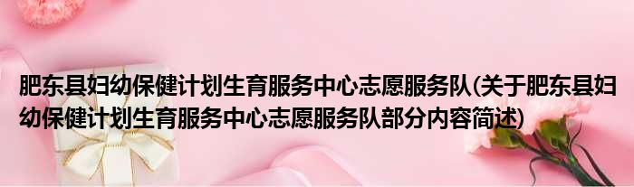 肥东县妇幼保健计划生育服务中心志愿服务队(关于肥东县妇幼保健计划生育服务中心志愿服务队部分内容简述)