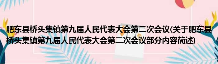 肥东县桥头集镇第九届人民代表大会第二次会议(关于肥东县桥头集镇第九届人民代表大会第二次会议部分内容简述)