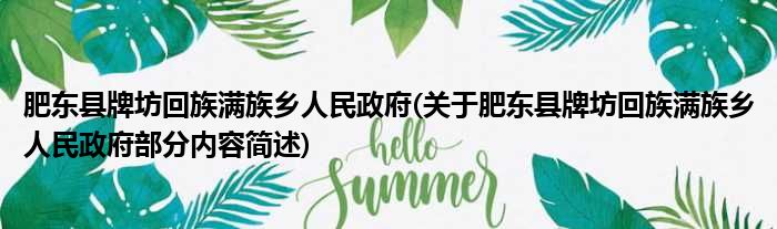 导读 大家好,今天小方来说说一篇关于肥东县牌坊回族满族乡人民政府,关于肥东县牌坊回族满族乡人民政府部分内容简述的文章,那么现在就为大家来