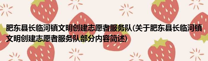 肥东县长临河镇文明创建志愿者服务队(关于肥东县长临河镇文明创建志愿者服务队部分内容简述)