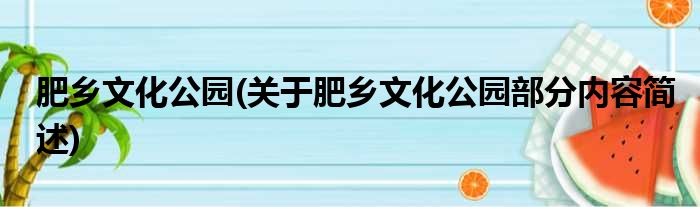 肥乡文化公园(关于肥乡文化公园部分内容简述)