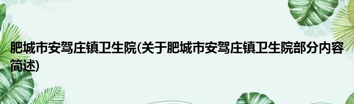 肥城市安驾庄镇卫生院(关于肥城市安驾庄镇卫生院部分内容简述)