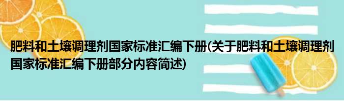 肥料和土壤调理剂国家标准汇编下册(关于肥料和土壤调理剂国家标准汇编下册部分内容简述)