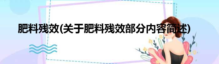 大家好,今天小方来说说一篇关于肥料残效,关于肥料残效部分内容简述的文章,那么现在就为大家来简单介绍下,希望对各位小伙伴们有所帮助。