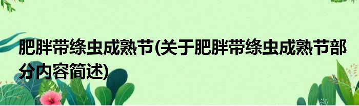 肥胖带绦虫成熟节(关于肥胖带绦虫成熟节部分内容简述)