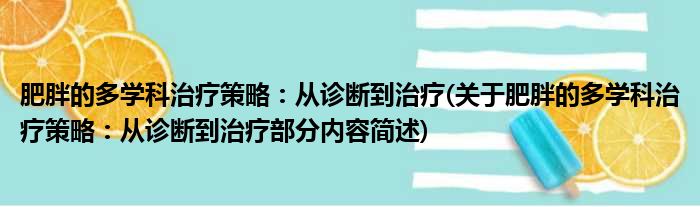 肥胖的多学科治疗策略:从诊断到治疗(关于肥胖的多学科治疗策略:从诊断到治疗部分内容简述)