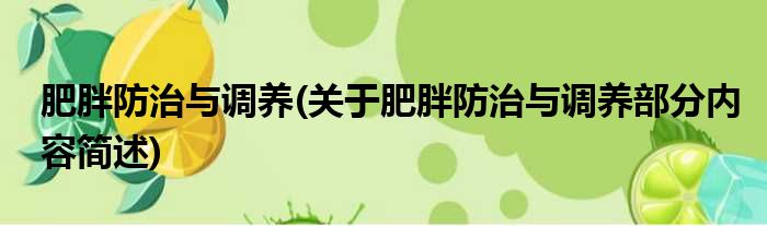 肥胖防治与调养(关于肥胖防治与调养部分内容简述)