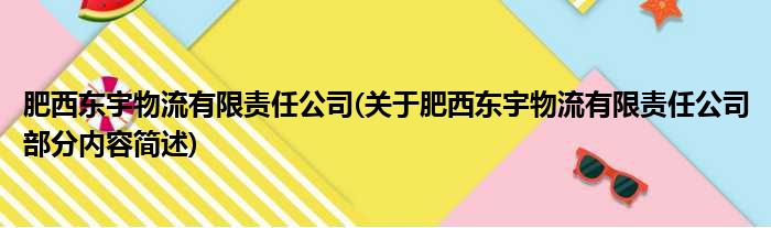 肥西东宇物流有限责任公司(关于肥西东宇物流有限责任公司部分内容简述)