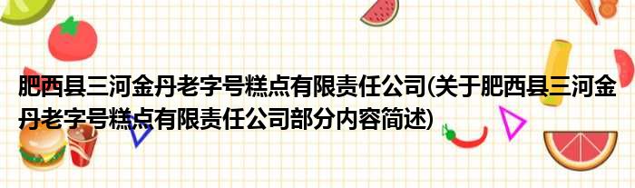 肥西县三河金丹老字号糕点有限责任公司(关于肥西县三河金丹老字号糕点有限责任公司部分内容简述)