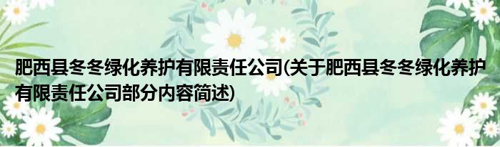 肥西县冬冬绿化养护有限责任公司(关于肥西县冬冬绿化养护有限责任公司部分内容简述)