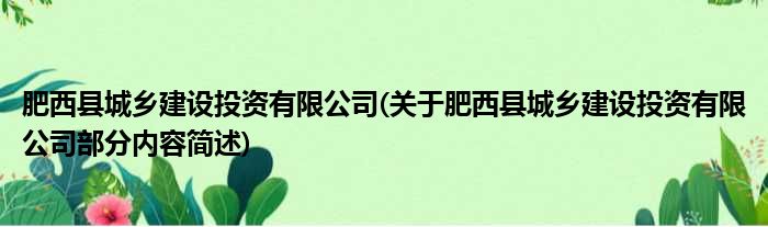 肥西县城乡建设投资有限公司(关于肥西县城乡建设投资有限公司部分内容简述)