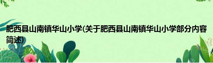 肥西县山南镇华山小学(关于肥西县山南镇华山小学部分内容简述)
