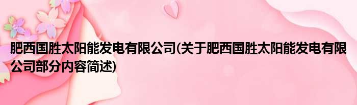肥西国胜太阳能发电有限公司(关于肥西国胜太阳能发电有限公司部分内容简述)