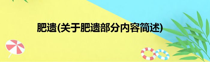 大家好,今天小方来说说一篇关于肥遗,关于肥遗部分内容简述的文章,那么现在就为大家来简单介绍下,希望对各位小伙伴们有所帮助。
