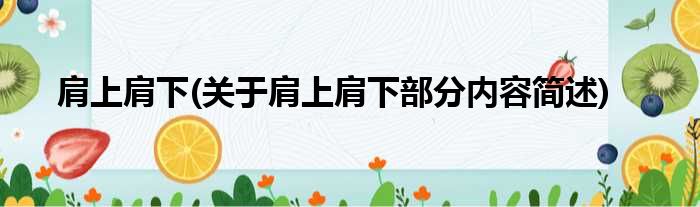 导读 大家好,今天小方来说说一篇关于肩上肩下,关于肩上肩下部分内容简述的文章,那么现在就为大家来简单介绍下,希望对各位小伙伴们有所帮助。