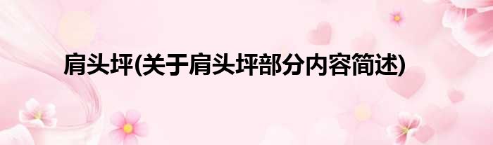 导读 大家好,今天小方来说说一篇关于肩头坪,关于肩头坪部分内容简述的文章,那么现在就为大家来简单介绍下,希望对各位小伙伴们有所帮助。