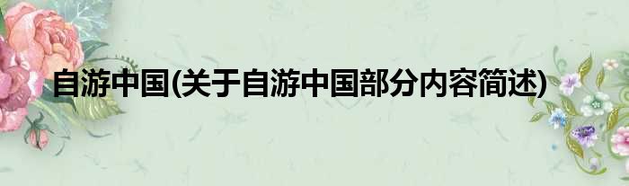 导读 大家好,今天小方来说说一篇关于自游中国,关于自游中国部分内容简述的文章,那么现在就为大家来简单介绍下,希望对各位小伙伴们有所帮助。