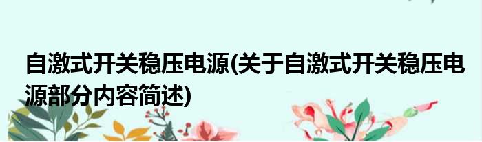 自激式开关稳压电源(关于自激式开关稳压电源部分内容简述)