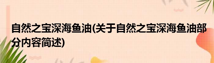 自然之宝深海鱼油(关于自然之宝深海鱼油部分内容简述)