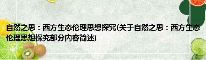 自然之思:西方生态伦理思想探究(关于自然之思:西方生态伦理思想探究部分内容简述)