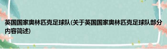 英国国家奥林匹克足球队(关于英国国家奥林匹克足球队部分内容简述)