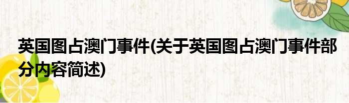 英国图占澳门事件(关于英国图占澳门事件部分内容简述)