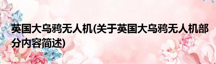 英国大乌鸦无人机(关于英国大乌鸦无人机部分内容简述)