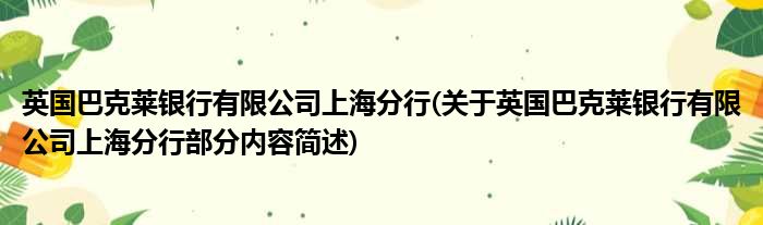 英国巴克莱银行有限公司上海分行(关于英国巴克莱银行有限公司上海分行部分内容简述)