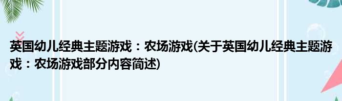 导读 大家好,今天小方来说说一篇关于英国幼儿经典主题游戏:农场游戏,关于英国幼儿经典主题游戏:农场游戏部分内容简述的文章,那么现在就为大