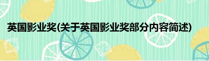 大家好,今天小方来说说一篇关于英国影业奖,关于英国影业奖部分内容简述的文章,那么现在就为大家来简单介绍下,希望对各位小伙伴们有所帮助。