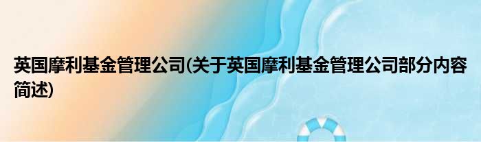 英国摩利基金管理公司(关于英国摩利基金管理公司部分内容简述)