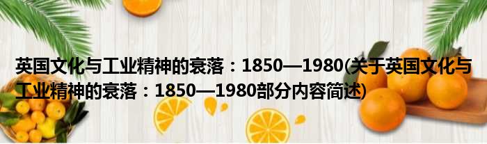 英国文化与工业精神的衰落:1850—1980(关于英国文化与工业精神的衰落:1850—1980部分内容简述)
