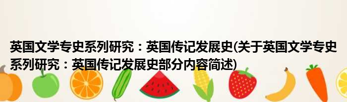 导读 大家好,今天小方来说说一篇关于英国文学专史系列研究:英国传记发展史,关于英国文学专史系列研究:英国传记发展史部分内容简述的文章,那