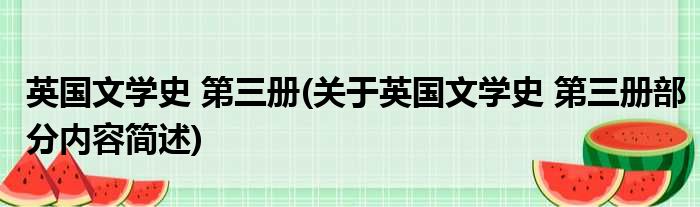 导读 大家好,今天小方来说说一篇关于英国文学史 第三册,关于英国文学史 第三册部分内容简述的文章,那么现在就为大家来简单介绍下,希望对各