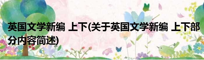 导读 大家好,今天小方来说说一篇关于英国文学新编 上下,关于英国文学新编 上下部分内容简述的文章,那么现在就为大家来简单介绍下,希望对各