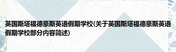 导读 大家好,今天小方来说说一篇关于英国斯塔福德豪斯英语假期学校,关于英国斯塔福德豪斯英语假期学校部分内容简述的文章,那么现在就为大家来