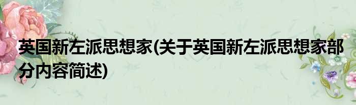 英国新左派思想家(关于英国新左派思想家部分内容简述)