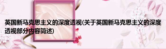 英国新马克思主义的深度透视(关于英国新马克思主义的深度透视部分内容简述)