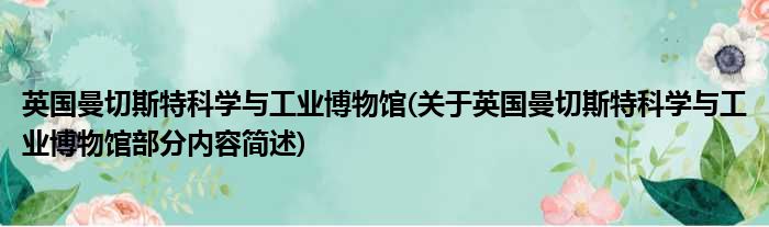 英国曼切斯特科学与工业博物馆(关于英国曼切斯特科学与工业博物馆部分内容简述)
