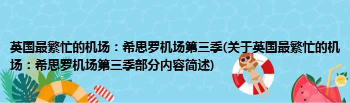 英国最繁忙的机场:希思罗机场第三季(关于英国最繁忙的机场:希思罗机场第三季部分内容简述)