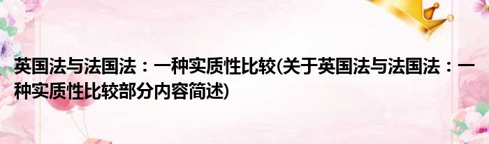导读 大家好,今天小方来说说一篇关于英国法与法国法:一种实质性比较,关于英国法与法国法:一种实质性比较部分内容简述的文章,那么现在就为大