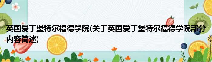 英国爱丁堡特尔福德学院(关于英国爱丁堡特尔福德学院部分内容简述)